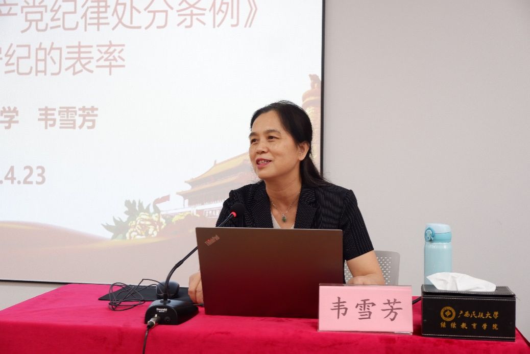 学习会邀请了自治区纪委监委派驻FUN乐天使官方网站纪检监察组组长、FUN乐天使官方网站党委副书记、纪委书记韦雪芳同志解读新修订的《中国共产党纪律处分条例》(以下简称《条例》),韦书记从《条例》此次修订的背景及意义入手,对《条例》的历次修订进行了概要回顾,逐条对新的《条例》中修订的具体内容进行了详细解读,并结合丰富的案例对相关违纪行为进行了直观的分析说明,对党员干部开展好学习贯彻和执行《条例》工作起到了很好的指导作用。
