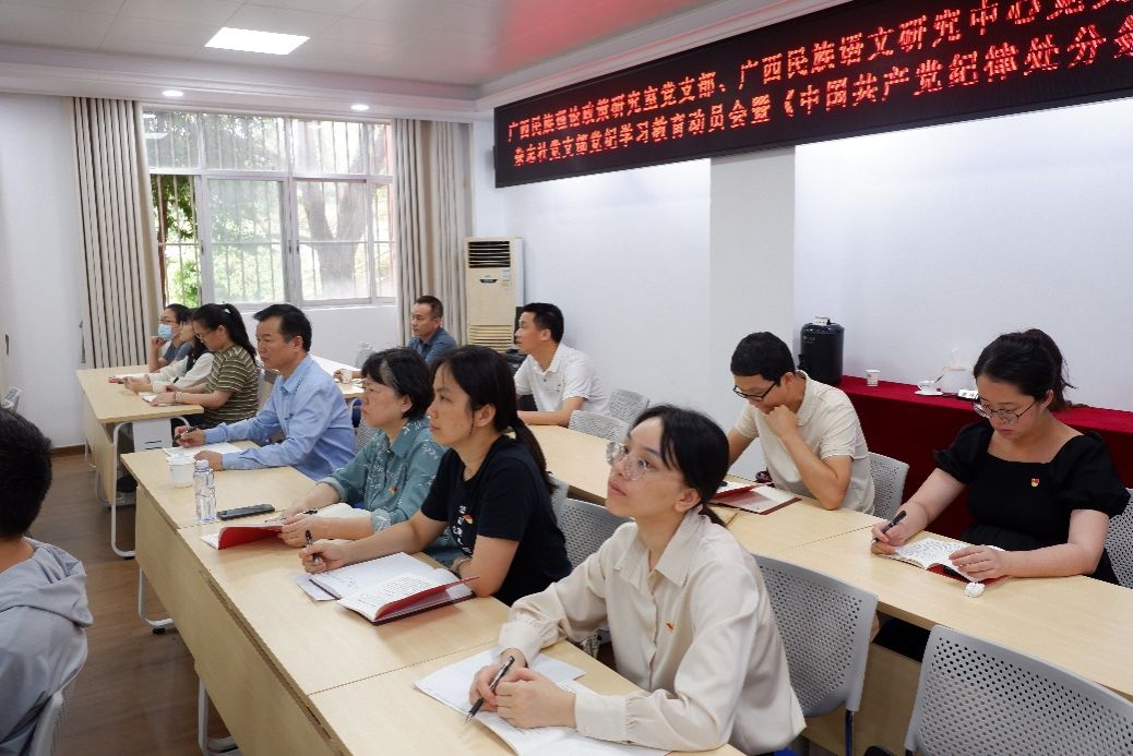 2024年4月23日下午,FUN乐天使官方网站党总支部同广西民族理论政策研究室党支部、广西民族语文研究中心党支部、广西三月三杂志社党支部进行共建,专题学习新修订的《中国共产党纪律处分条例》,全体党员同志参加。